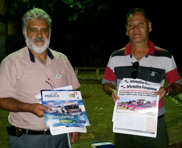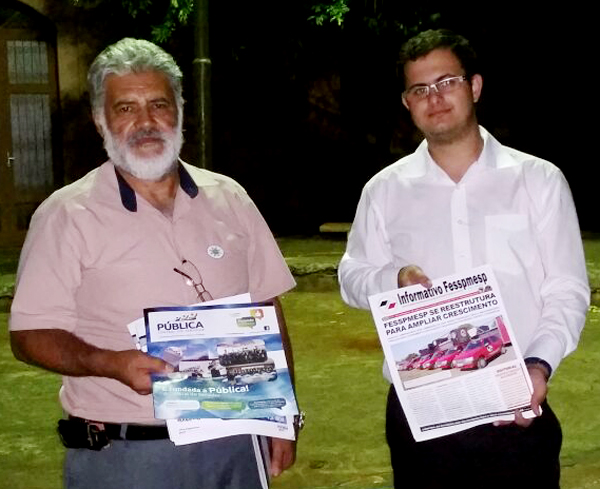 Levamos também os mais recentes informativos da Pública e da Federação dos Sindicatos dos Servidores Públicos do Estado de São Paulo (Fesspmesp). Rafael enfatizou o apoio aos companheiros da cidade e que a Confederação vem somar em nível nacional a abrangência do apoio que eles já têm da Federação.