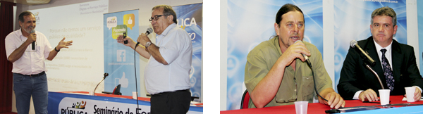 | Os palestrantes abordaram temas de interesse do Servidor. À direita, Leme é empossado na Estadual |