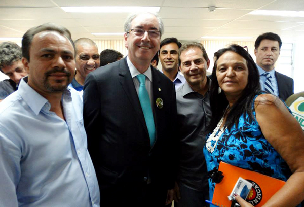 | José Raimundo (Barueri), Paulinho da Força e Cristina Gomes (Itapira) com o deputado Eduardo Cunha |