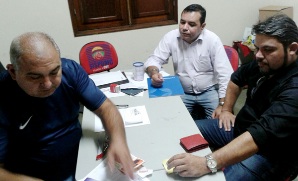ESTRATÉGIAS - Nedilson esteve reunido nos dias 10 e 11 de março, com o vice-presidente Daniel Ferreira Júnior, João Donizete Bertelli (conselheiro fiscal) e José Antônio Garcia Neto (diretor de assuntos sindicais), em Cuiabá (MT), para elaboração do plano estratégico de trabalho de Fesspmemt 2016.