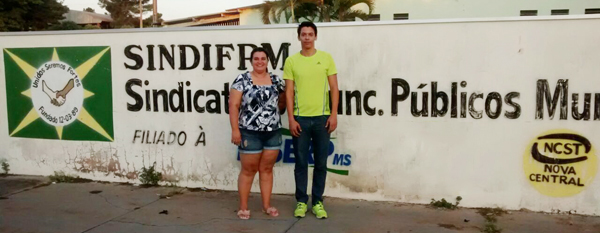 Regina com o companheiro Ricardo na sede da entidade. Apresentamos nosso trabalho ao Sindicato |