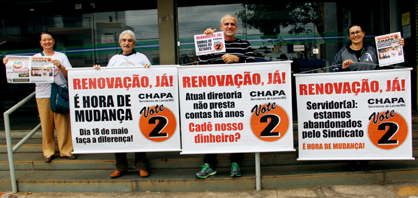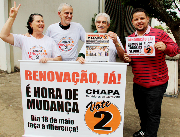 "Estamos em Lavras apoiando os companheiros da Chapa 2. Percebemos que é um grupo comprometido e interessado em mudar a realidade dos Servidores do município. Além de apoio técnico em eleição, disponibilizamos materiais impressos para divulgar todas as propostas e os comprometimentos da nossa Chapa", afirma o dirigente Rafael Moreira.