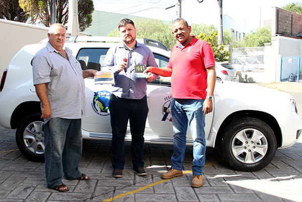 Em nosso trabalho permanente de apoio às Federações já filiadas, nós fizemos uma promessa: um veículo por região para agilizar nossas ações. Em setembro do ano passado, o presidente Aires Ribeiro e o tesoureiro Juvenal Barbosa entregaram uma Duster zero para a Fesspmemt (saiba mais). Desta vez, os contemplados foram os dirigentes da Fespufemes (Federação dos Servidores do Espírito Santo).