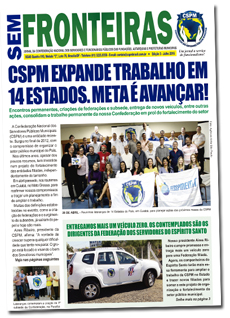 A Confederação lançou a 3ª edição do jornal Sem Fronteiras, informativo impresso da entidade. A publicação destaca a expansão do trabalho da CSPM em 14 Estados e como os dirigentes têm se empenhado para alcançarmos cada vez maior atuação. O presidente Aires Ribeiro fala em seu editorial sobre o projeto nacional em prol do funcionalsimo e como temos conseguido conquistar ganhos para o setor.