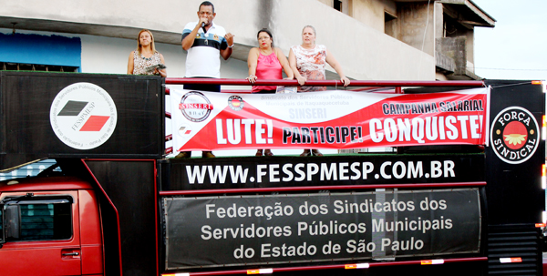 | Nosso diretor de imprensa Denilson Bandeira discursa no caminhão de som da Fesspmesp |