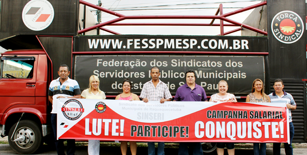| Nosso diretor de imprensa Denilson Bandeira esteve ontem (5) em Itaquaquecetuba, interior de São Paulo, para fortalecer o movimento dos Servidores na Campanha Salarial de 2015. Sob a coordenação do Sinseri (Sindicato da categoria) houve assembleia geral, quando os companheiros rejeitaram o repasse da inflação de 6,59% oferecido pela administração e optaram pelo estado de greve, além de aprovarem uma manifestação em frente à prefeitura, dia 24, às 14 horas. BANDEIRA - “A Confederação repudia a atitude arbitrária do prefeito que simplesmente não ouviu o Sindicato e negociou o reajuste da categoria com os vereadores. Vamos continuar dando todo suporte necessário, inclusive na manifestação do dia 24 de março”, afirma Denilson. |