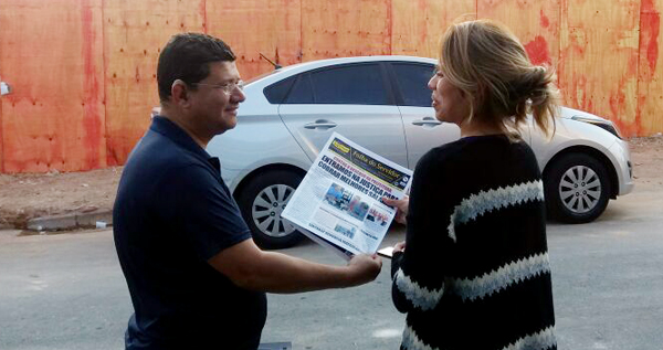 Presidente do Sintrasp, Toninho do Caps, realiza a entrega do jornal com as principais lutas da categoria |