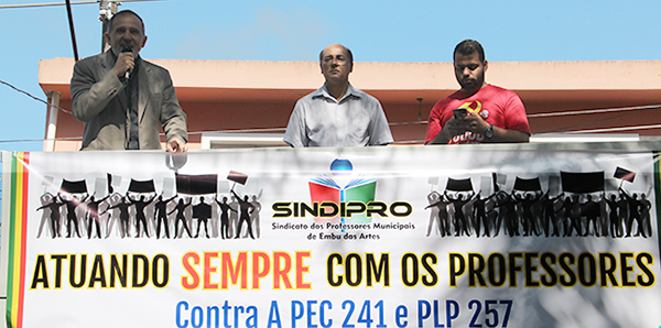 Preocupado com os rumos futuros traçados pelo PLP 257/16 e também a PEC 241 - matérias em tramitação que apresentam retrocessos contra conquistas do funcionalismo - o presidente do Sindicato dos Servidores Municipais do Embu das Artes, Sebastião Caetano Paixão, promoveu hoje (26), ato no Largo 21 de Abril, com objetivo de demonstrar a insatisfação da categoria com as medidas adotadas pelo atual Governo Federal com relação aos trabalhadores.