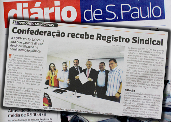A entrega da Certidão Sindical para nossa Confederação repercutiu em toda mídia. Jornais e sites destacaram o ministro do Trabalho e Emprego, Manoel Dias, na sede da Força, dia 3. Na ocasião, Dias entregou ao presidente Aires Ribeiro, o documento que legitima a entidade como representante do Servidor municipal.