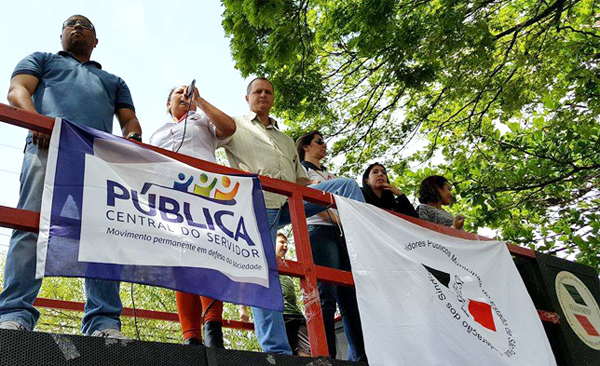 PARTICIPAÇÃO - Desde o início da mobilização, nosso presidente Aires Ribeiro e diversos dirigentes da Confederação e de entidades sindicais da região marcaram presença, a fim de fortalecer a mobilização. O caminhão de som da Fesspmesp também esteve no local. Na última semana, diante da falta de posicionamento da Administração, os Servidores tomaram as dependências do Paço Municipal.