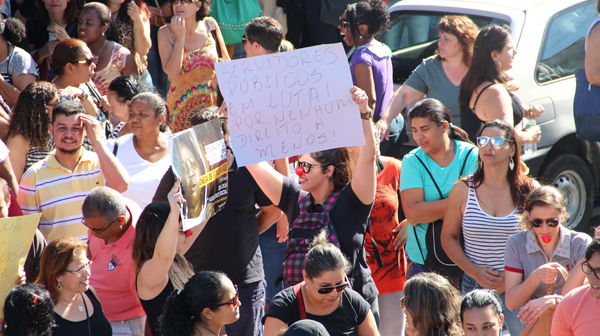 Trabalhadores marcaram presença com faixas e nariz de palhaço e gritaram muitas palavras de ordem |