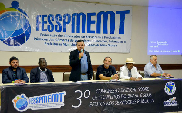 SUCESSO - Nedilson Maciel, presidente da Fesspmemt, afirma: “Sem dúvida foi um sucesso. Conseguimos reunir grandes personalidades do movimento sindical, assim como o presidente da CSPM, Aires Ribeiro, e o presidente da Pública - Central do Servidor, Nilton Paixão”. Nedilson ainda destaca: “Reunir 30 Sindicatos nesse imenso estado matogrossense é uma vitória. Quem compareceu não se arrependeu e todos ficaram satisfeitos com a tamanha envergadura do Congresso”. |