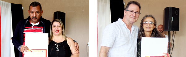 HOMENAGEM - Após as falas, a emoção tomou conta dos companheiros quando Vali foi agraciada pelo presidente Aires com lindo buquê de flores, a fim de representar a força e importância da mulher nesse período. A dirigente afirma: “Foram muitas dificuldades, tivemos muitos ganhos e algumas perdas, mas jamais, nunca, vou desanimar e deixar de fazer parte dessa grande e linda família”.
