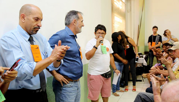 Tadeu Cohen, coordenador do Sindicato dos Servidores de Campinas, comanda assembleia na sede |