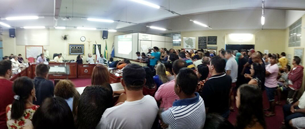 Servidores e população lotaram a Câmara dos vereadores para combater a atitude egoísta do prefeito |