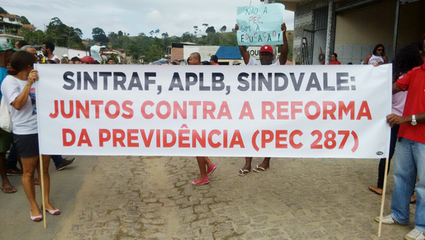 O Estado da Bahia segue firme na luta contra a PEC 287 (Reforma da Previdência). Arnaldo Santos da Silva, presidente do SindVale (Sindicato Intermunicipal dos Servidores Públicos Municipais do Vale do Jiquiriçá), foi um dos organizadores do forte ato realizado hoje na cidade de Mutuípe, com concentração a partir das 8h30.