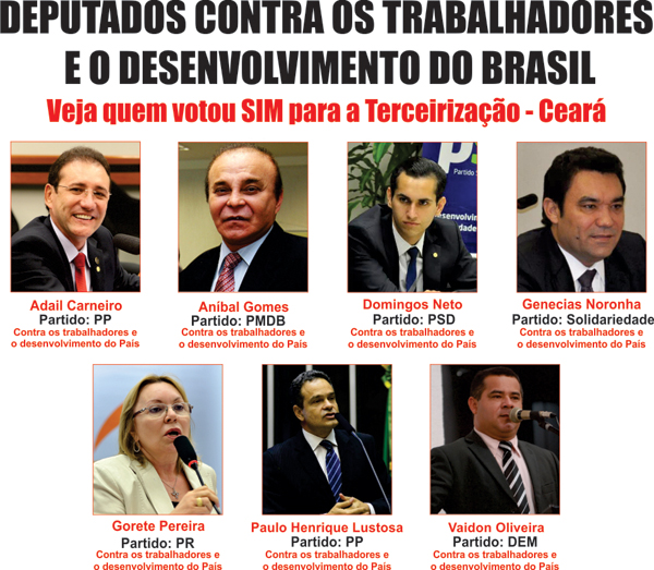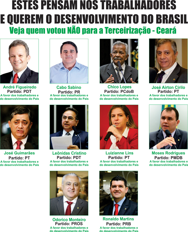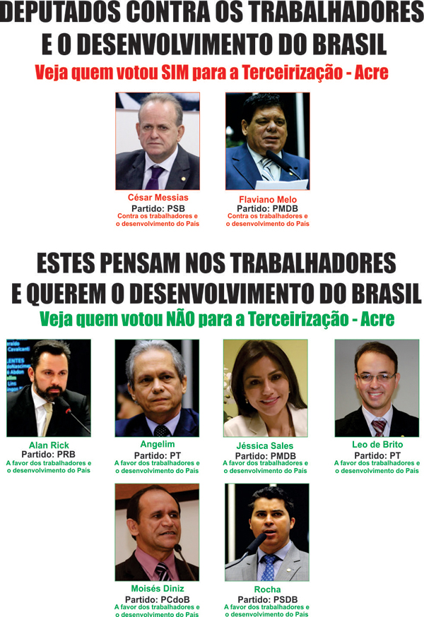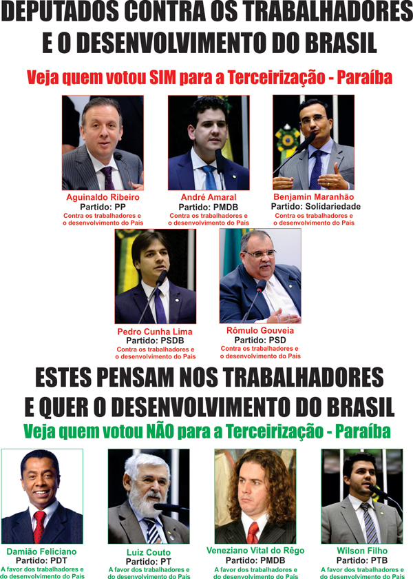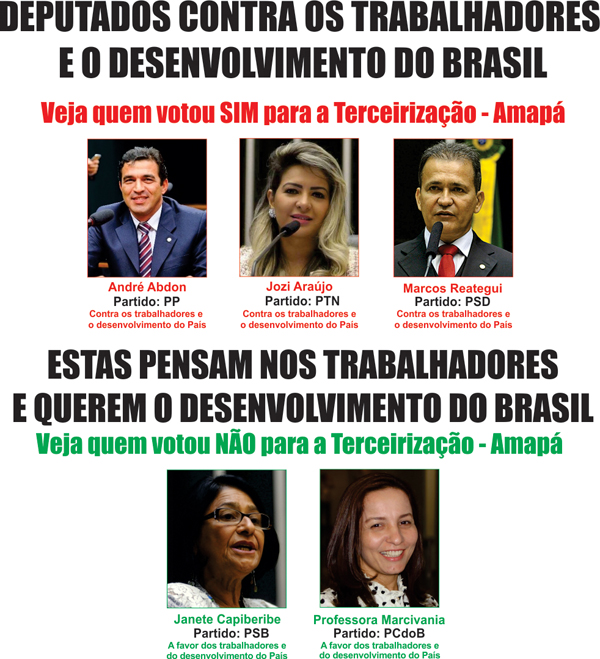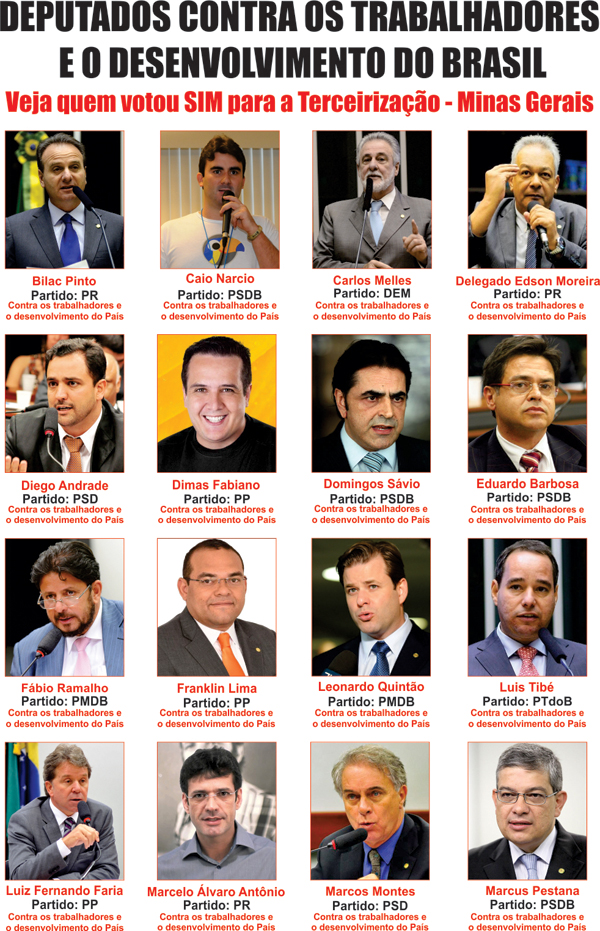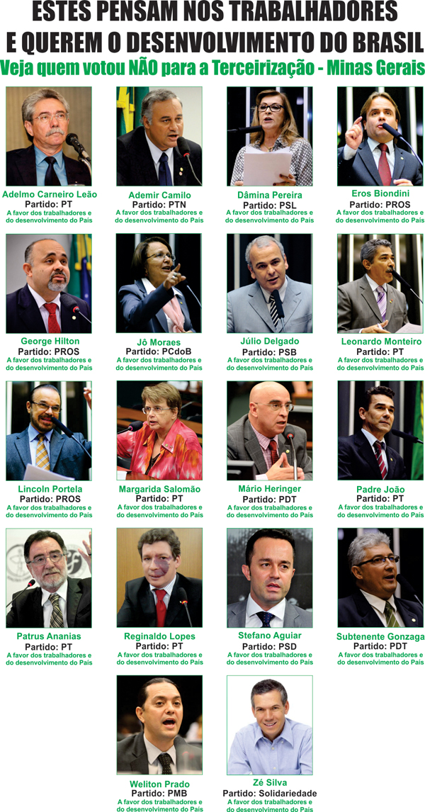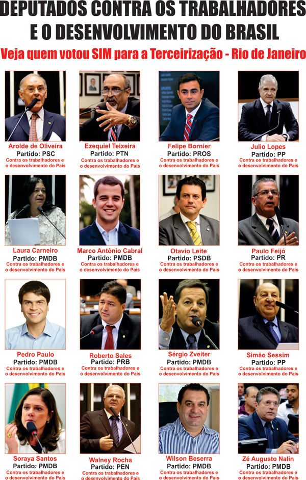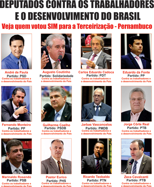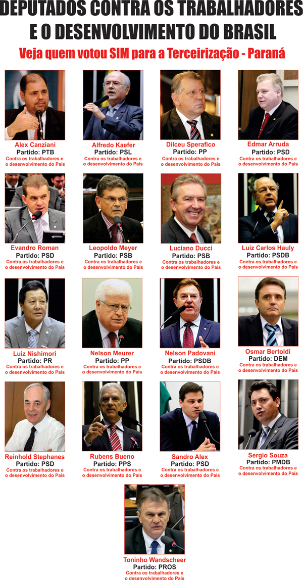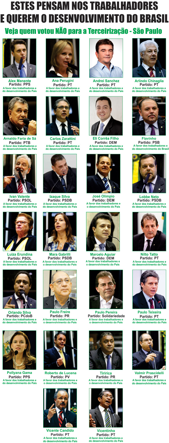 COMPARTILHE! - Você, trabalhador, que lê essa matéria, tem duas missões: 1) Divulgar o máximo que puder em suas redes sociais e nos grupos que participa, além de mandar para o máximo de contatos no Whats; 2) Não votar nesses sujeitos favoráveis à Terceirização nas eleições para deputado federal em 2018.