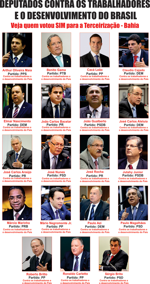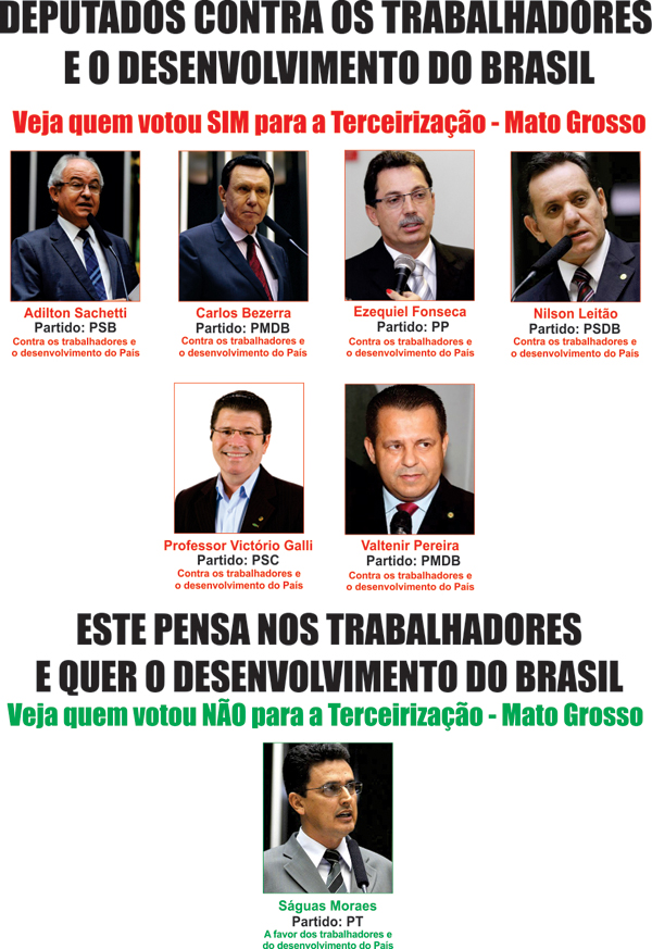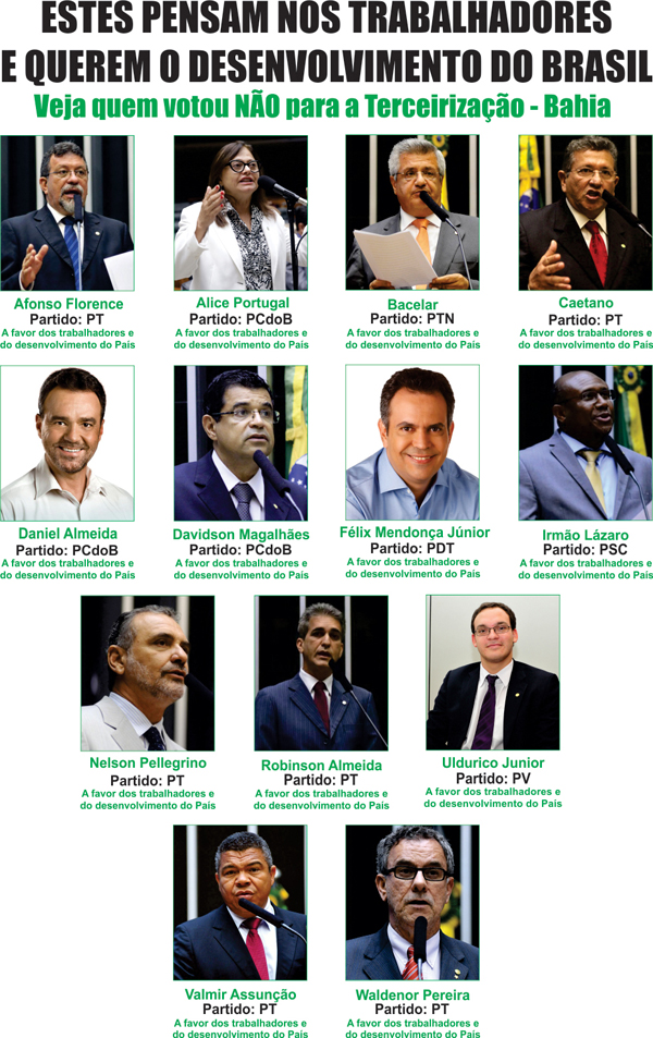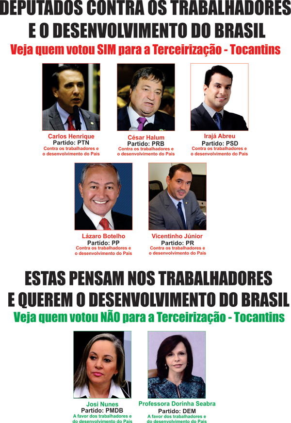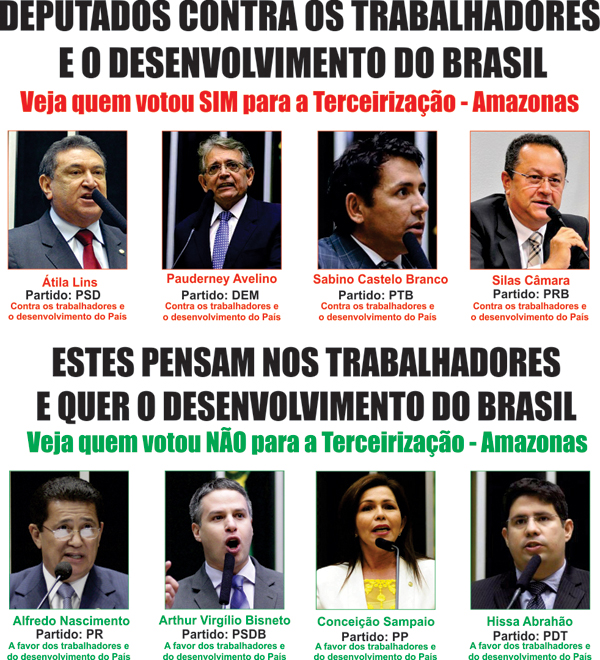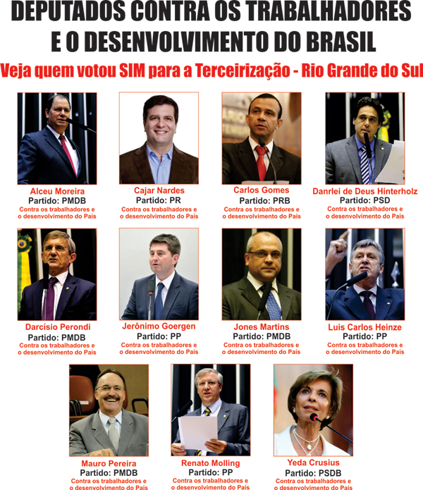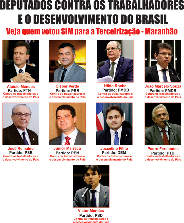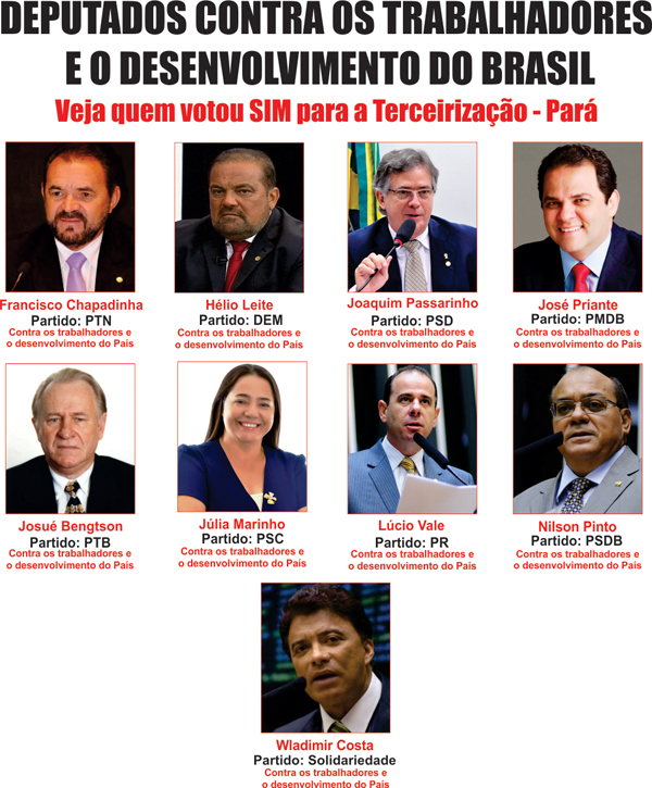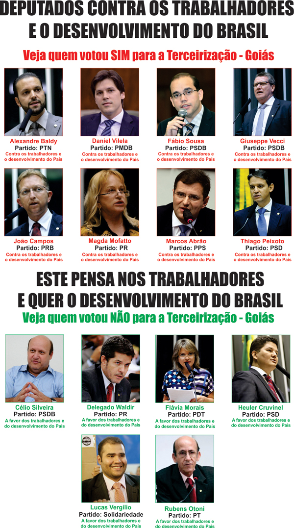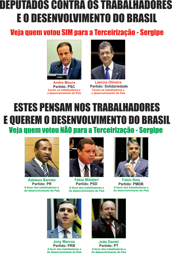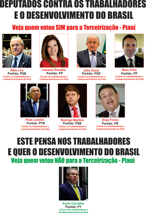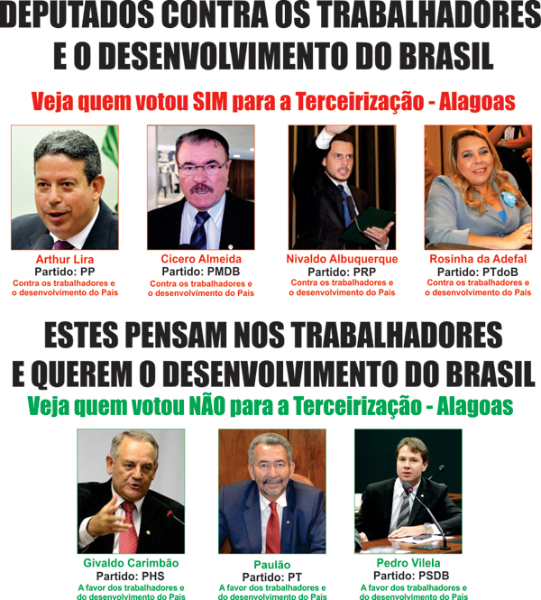 COMPARTILHE! - Você, trabalhador, que lê essa matéria, tem duas missões: 1) Divulgar o máximo que puder em suas redes sociais e nos grupos que participa, além de mandar para o máximo de contatos no Whats; 2) Não votar nesses sujeitos favoráveis à Terceirização nas eleições para deputado federal em 2018.