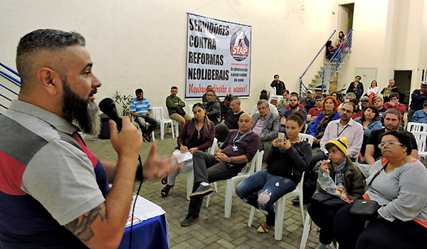 APROVAÇÃO - Além deste tema, também foi colocada em debate a participação dos Servidores na próxima greve geral a ser realizada em 28 de abril. O Servidor aprovou a participação e devem fortalecer o movimento. O presidente do Sindicato, Pedro Zanotti Filho, comenta: "Temer não quer só prejudicar os trabalhadores. Ele quer o Estado mínimo e a desorganização da Nação. Isso nós não iremos permitir".