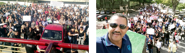 os Servidores presentes no ato. A concentração inicial foi no Paço Municipal e, logo em seguida, todos percorreram as principais ruas da cidade com placas de repúdio aos desmandos do prefeito. Foi um grande sucesso e com alta adesão por parte do funcionalismo, cansado dos descasos. |