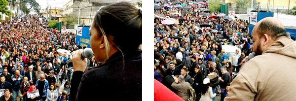 Os Servidores públicos do município de Guarulhos continuam de braços cruzados contra o desrespeito e a falta de valorização da Administração. Hoje, dia 22 de maio, novamente a categoria lotou as ruas da cidade em repúdio ao Governo que permanece sem oferecer um reajuste digno para a categoria. Às 13 horas, ocorreu uma assembleia com todos os Servidores para deliberarem os próximos passos de luta. Por unanimidade, o funcionalismo optou pela continuação da greve.