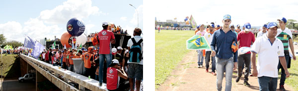 DISPOSIÇÃO - Com faixa, bandeiras, cartazes e muita disposição de luta, os trabalhadores se concentraram no Estádio Mané Garrincha e depois seguiram em caminhada até a Esplanada dos Ministérios. Palavras de ordem foram entoadas, lideranças exigiram um País mais justo, igualitário e honesto. Todos os participantes que utilizaram-se da fala nos caminhões de som não aceitam as ditas "reformas necessárias" e se manifestaram contrários à corrupção alastrada por todo o País. |