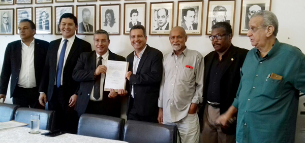 Presidente da FESSPRJ, Alexandre Azevedo, e membros da diretoria recebem Certidão Sindical no Rio |