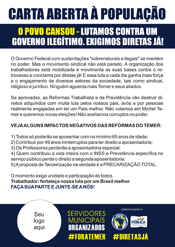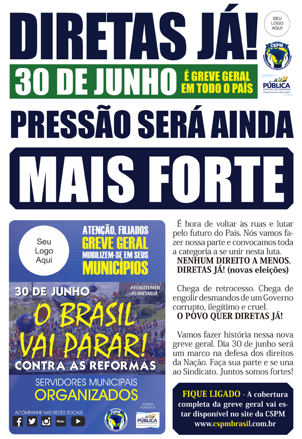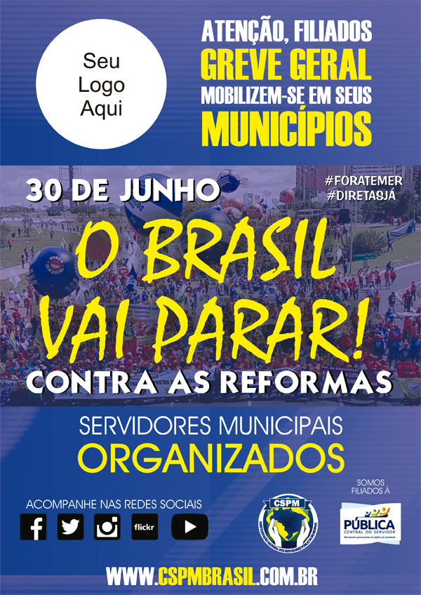 e depois da greve geral, marcada para dia 30 de junho, contra as Reformas do Governo Federal (Trabalhista e Previdenciária). O BRASIL INTEIRO VAI PARAR!