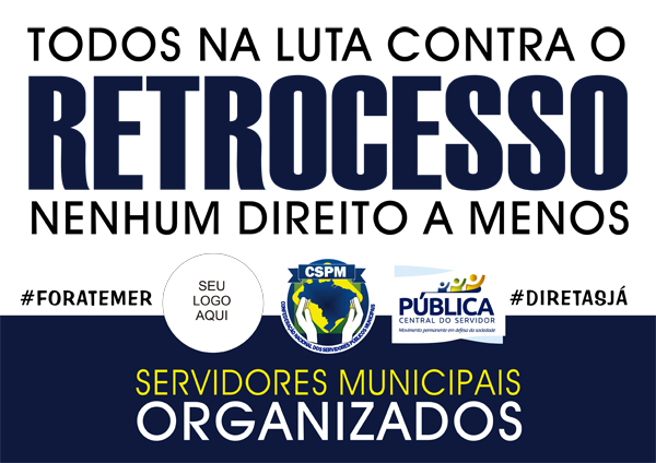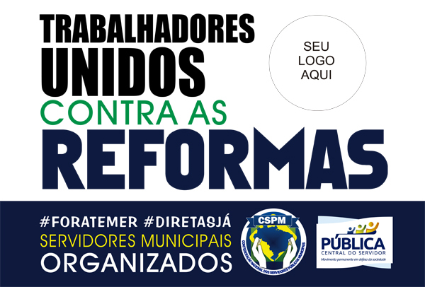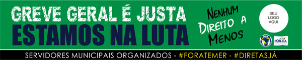 FALA, BANDEIRA - "Essa é mais uma prestação de serviços da nossa equipe de comunicação. Estamos disponibilizando banner, informativo, carta aberta, arte de camiseta, faixa e cartazes para todos os momentos da greve geral. Ainda deixamos um espaço para colocarem o logo das entidades que presidem", afirma Denilson.