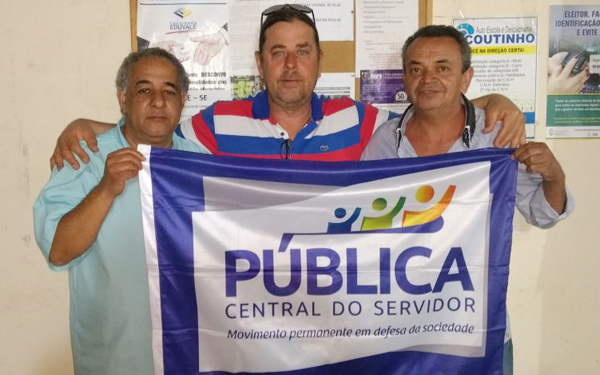 Sindicalistas Leme, Leonardo do Espírito Santo e Álvaro Fernandes durante filiação à Central Pública