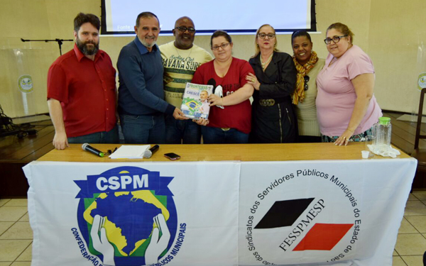 A primeira edição da nossa revista, Sem Fronteiras, foi destaque na reunião de coordenadores regionais da Fesspmesp (Federação dos Sindicatos de São Paulo). O evento ocorreu hoje (24), pela manhã no Guarujá, em São Paulo. Dirigentes da baixada santista tiveram a oportunidade de conhecer a revista em primeira mão. O presidente Aires Ribeiro entregou algumas publicações para os líderes presentes.