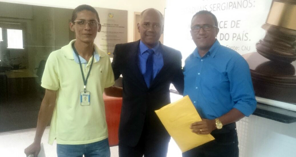 À esquerda, Márcio Gomes; na sequência o advogado Edil Antônio com o lider da Fesspmese, Gerinaldo |