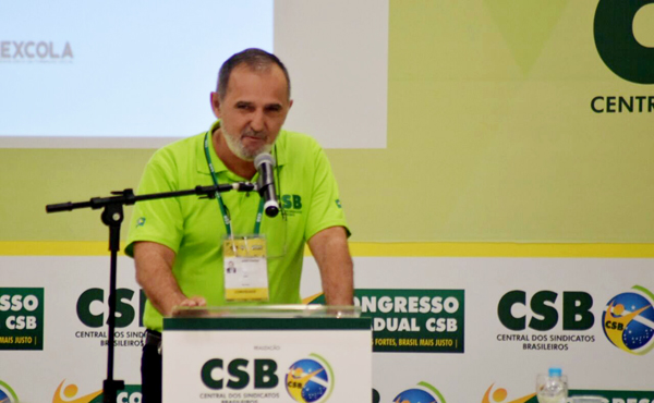 Presidente Aires Ribeiro discursa no último dia do Congresso Estadual da CSB; evento foi um sucesso |