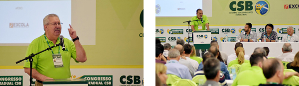 FILIAÇÃO - Em seu discurso no primeiro dia de evento, o presidente Aires Ribeiro sacramentou a filiação à CSB. Em sua fala, ele disse: "Os Servidores públicos estão vindo a este projeto não para serem coadjuvantes, mas para protagonizar junto aos demais segmentos a luta por um País melhor". O evento foi produtivo e agregou grande conhecimento aos presentes. Parabéns à Central pelo projeto.