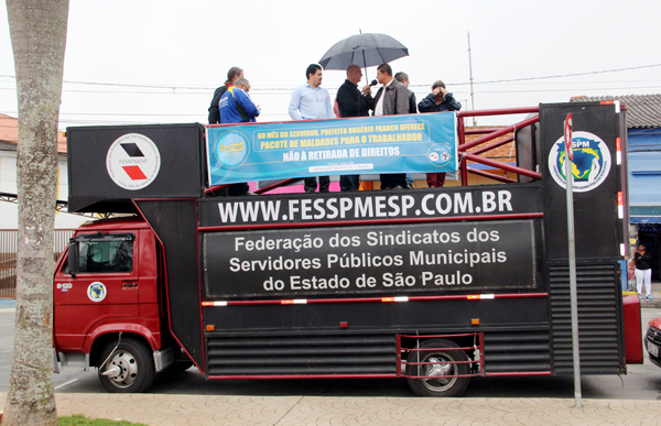 No local, os companheiros exibiram cartazes com frases com os seguintes dizeres: "Direitos roubados, serviço público sucateado". A mobilização teve o apoio do nosso presidente Aires Ribeiro, lideranças da Fesspmesp (Federação dos Servidores Públicos Municipais do Estado de São Paulo) e dirigentes das cidades de Americana/SP, Itu/SP, Itaquaquecetuba/SP e Itapecerica da Serra/SP.