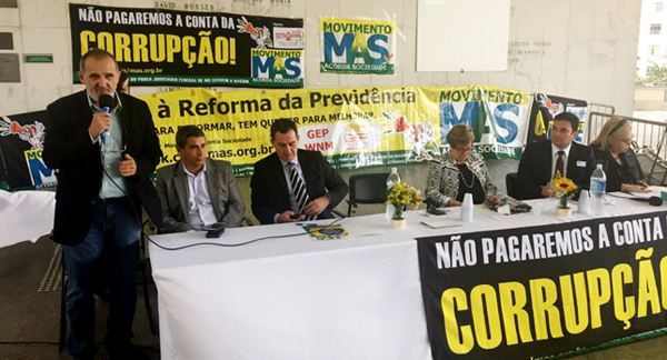 A Câmara Municipal de São Paulo foi palco da audiência pública do MAS - Movimento Acorda Sociedade, sobre a Proposta de Reforma Previdenciária, que ocorreu hoje, dia 6 de novembro. Na ocasião, o presidente Aires Ribeiro esteve presente e foi um dos líderes que puderam discursar durante o evento. Também participaram da audiência figuras políticas: Senador Paulo Paim, por meio de vídeo, os deputados Arnaldo Farias de Sá e Major Olímpio e o vereador Adilson Amadeu.