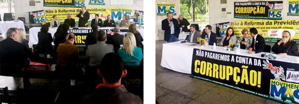 TEMAS - Foram duas mesas de palestras e debates, a primeira das 11h10 às 12h40 e a segunda das 12h45 às 14h25. Ambas trataram dos principais problemas que a proposta da PEC 287 (Reforma da Previdência) irá causar aos trabalhadores do País, desde os que atuam na zona rural até os cargos que contam com aposentadoria especial, como os policiais. Ao final de cada mesa houve espaço para que os convidados retirassem quaisquer dúvidas referentes aos temas. |