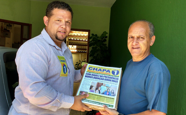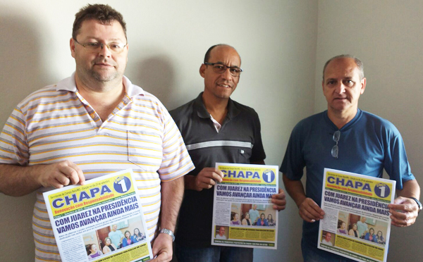 | Diretores do Sindicato de Campo Belo e encabeçador da Chapa 1, Juarez, já estão distribuindo o jornal |