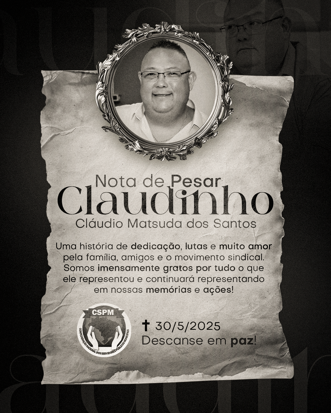 Com profunda tristeza, comunicamos o falecimento do nosso companheiro Claudinho, diretor da CSPM