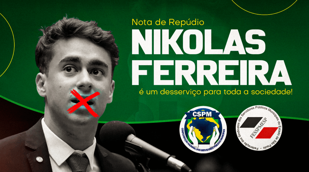A Confederação Nacional dos Servidores Públicos Municipais (CSPM) vem a público manifestar seu veemente REPÚDIO às declarações irresponsáveis, generalizadoras e infundadas proferidas pelo deputado federal Nikolas Ferreira (PL). Suas falas infelizes promovem a criminalização e a desmoralização dos Servidores públicos, categoria da qual os Professores são parte integrante e fundamental.